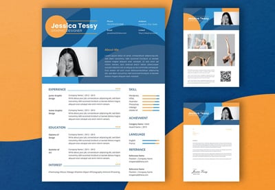 Let's add some color back into the offer. Add some personality to your file and try a resume template for Illustrator with a color background. The image above is just an example of what you can do with this template. It features: