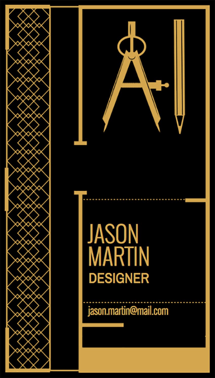 The best business card designs are able to communicate what you do without their recipient even having to read your title. This business card for chefs is a great example of that, with its motifs of kitchen utensils that form the background of the card combined with kitchen knives used as a central logo and motif.