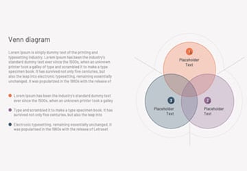 This Venn diagram on PowerPoint is 109 KB in size. Included are editable Venn diagram graphics and text placeholders.