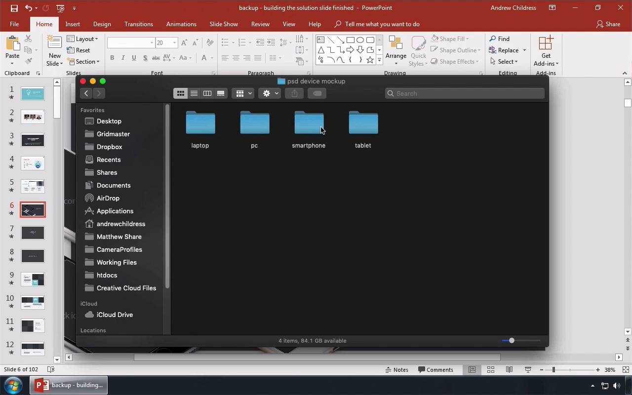 Let's build another slide that shows off the solution you developed, this time with a mobile-centric view. Learn how to adjust PSD files included with Pitch Werk.