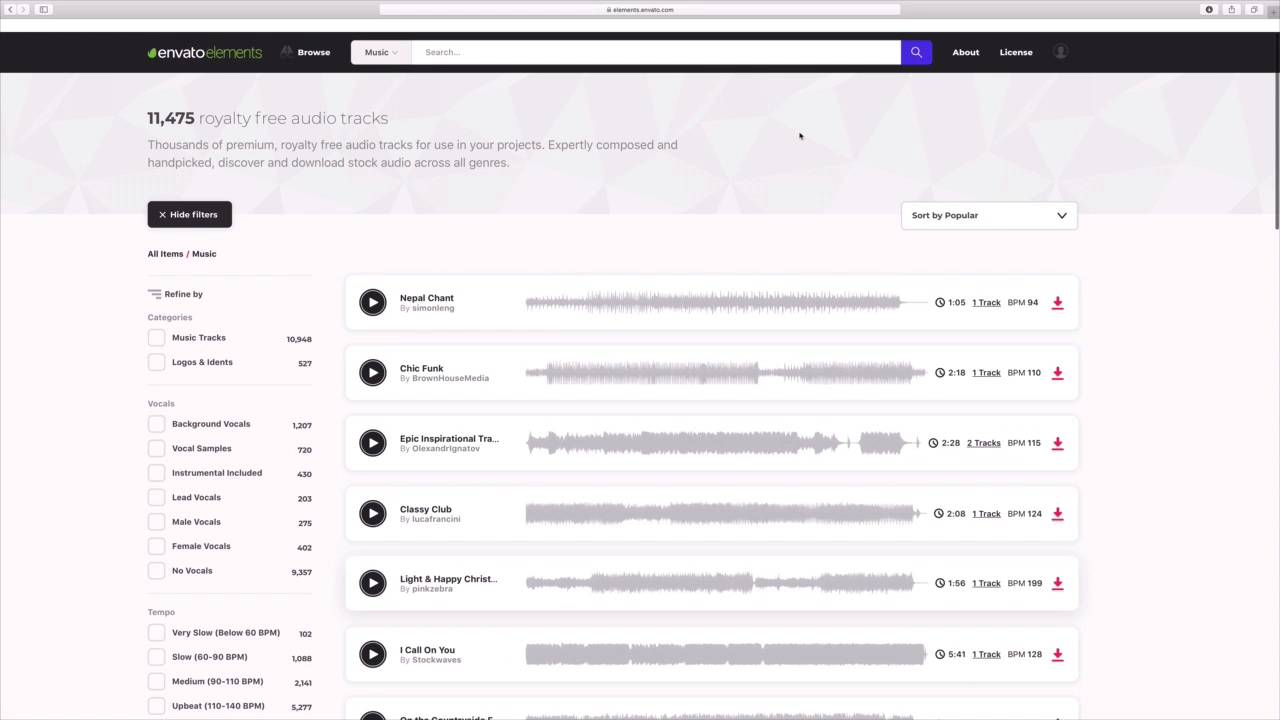 When you think of giving a keynote presentation you probably picture yourself standing in front of slides and talking. Well that's a big part of it sometimes it can be really useful to add music to your slides. This can be for background music as you speak or as the only sound if you're sharing your presentation without narration. Whatever the purpose adding music to Apple keynote presentations is easy and a perfect way to make them memorable. I'm working in a keynote presentation here, as you can see, it's a marketing presentation for a property I'm trying to sell. My idea is supposed this keynote presentation online for potential buyers to view. I won't be standing in front of them and speaking, so I think some music would keep them engaged and interested in my pitch. Keynote will allow me to easily add music to play in the background, let me show you how. Before we get started, remember to always be careful when adding music to your slides, this is really for two reasons. First, it can be distracting if it's too loud and drowns out the slide content, but also you should avoid just adding music to slides because of copyright concerns. While your favorite song might go great with your slides, you probably aren't licensed to use it. That's where Envato elements comes in. Elements has recently added a library of music and audio that you can use in all of your projects. Let's jump over to elements here and browse in the music section. As you can see Elements already has thousands of royalty free music tracks to choose from, as I scroll you can easily recognize the diversity of sounds available. Remember my point earlier about choosing music that isn't overpowering. Soft piano music always matches that description, so I'll go ahead and type that up here in the search box and press Enter, elements were returned with some matching results. It pays to try the malt first and to do that all just click on the play button beside the file I want to try out. Elements will play a preview and if I like it, I'll go ahead and download it. To do that simply click on this download arrow on the far right side. Elements will ask for a licensed used essentially asking how you intend to use the music. Enter one in, then click Add and Download. Remember, even if you stop subscribing the elements, you will keep your licenses for all projects you have downloaded in the past. The file will download and now let's go ahead and extract it to make it usable. Okay, I will jump over to my key note presentation and now it's time to add the audio. I will start on the slide and then come up here and start tab, then on the drop down, I'll click on Choose. Next I'll browse to where the downloaded song is stored on my computer, click to select it and then choose Insert. Keynote will drop this audio onto the slide. I'll click on the sound icon on the slide and you'll see this audio sidebar open up over on the right. Here, I can make edits to the audio, there's a volume slider and these repeat options here at the bottom, specify if I want the file to play once, or over and over again. There are also options to trim audio, this is great if the song is lengthy and you only want to play a portion. To trim the audio, simply click on these handles and drag to select only the time window you want to play as you're seeing me do here. Finally, I can choose whether to start the music automatically or upon clicking by checking this box here at the bottom, that's it. You can see how easy it is to add great background music to your keynote presentation. Thanks for watching.