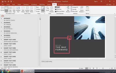 PowerPoint has a variety of views that help you work with slides in different ways. In this lesson, you'll learn two of them: outline and slide sorter view. Outline view will help you visualize the content that populates your slides, while Slide Sorter view can help you rearrange the sequence of slides.
