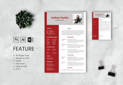 Dieses Paket hat viele wichtige Funktionen, so wie CMYK-Farbeinstellungen, viele Seitengrößen und kostenlose Schriftarten, die Ihnen helfen, den perfekten Lebenslauf zu erstellen.