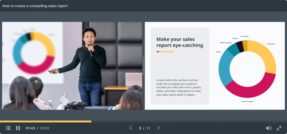 Pair these videos with so much more. Turn your presentations into full courses, with quizzes, eLearning interactions, and interactive role-plays. Then export your presentation into common video format or deploy as fully interactive mobile-ready courses.
