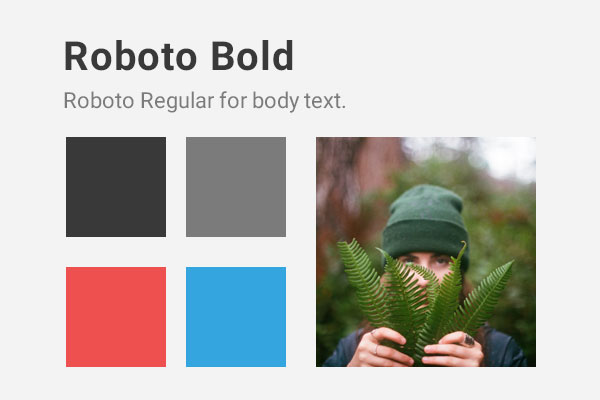 Let's add a single sentence description underneath each title. As you could see in the style guide, for the body text we use Roboto regular and a grey font color. Use Keynote tools to achieve the following result, assuring that the body text is also defined as placeholder text: