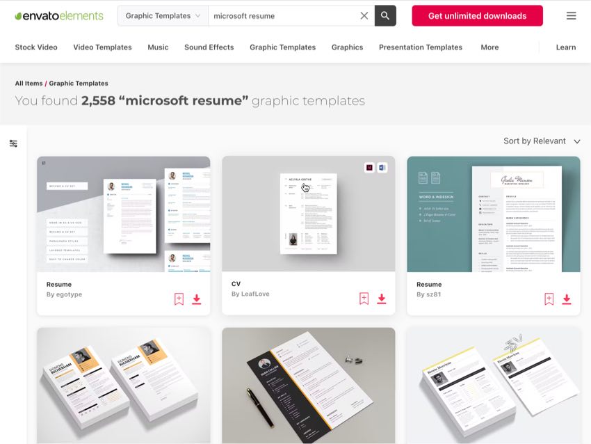 Envato Elements is the best source for any kind of resume template. They've got templates for people with no experience and for people with a lot of experience. Also, they've got themed resumes that you can use to match the job that you're applying to.